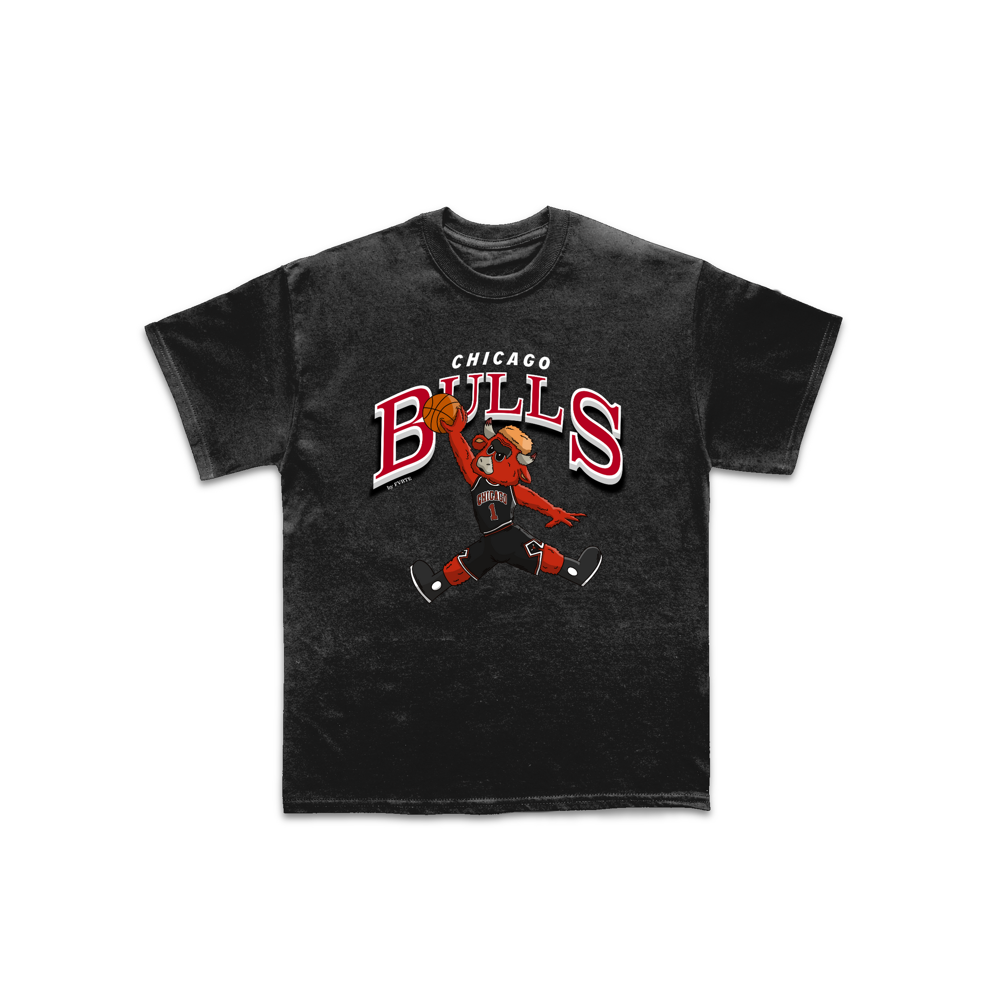 A short-sleeved tee, with a Chicago Bulls 'Benny the Bull' mascot graphic on the front.